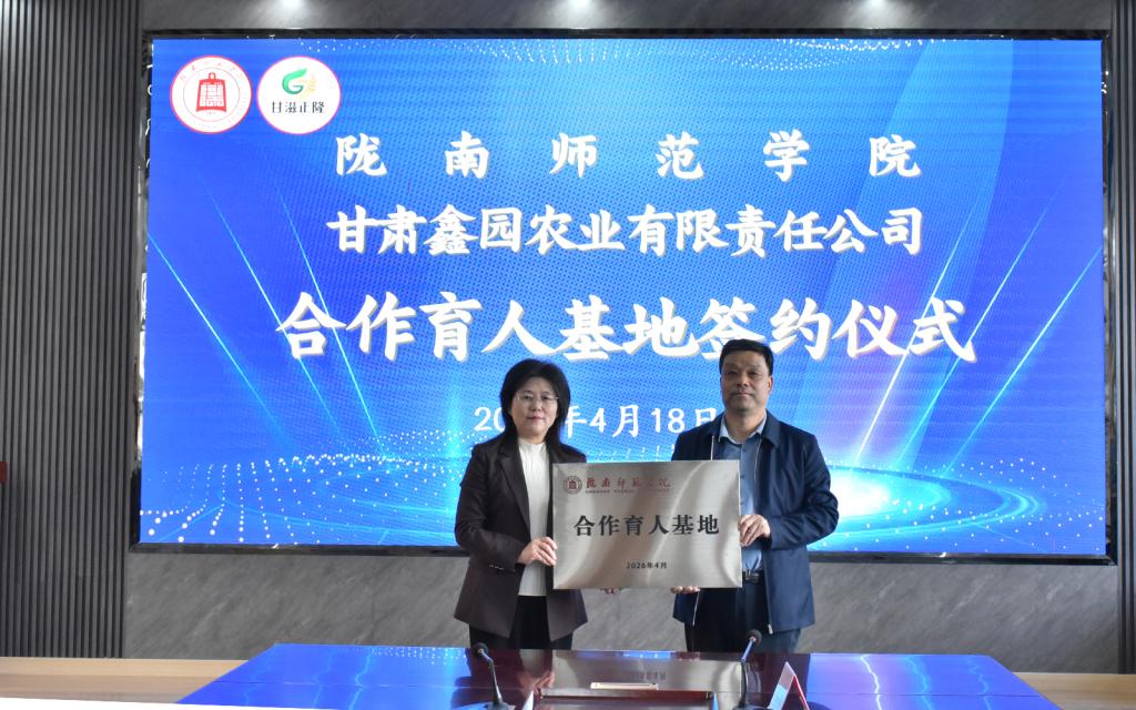 4月18日,我校与甘肃鑫园农业有限责任公司举行校企合作签约暨授牌仪式。校长李艳红,甘肃鑫园农业有限责任公司总经理镡仲峰出席仪式,开启校企合作、协同育人新篇章。